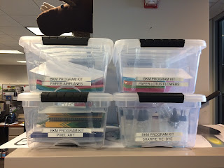 We've only made a few pop-up appearances with the bookmobile so far this summer, but word is they're going quite well. The short videos help to reinforce to bookmobile patrons that they can participate in the activity even if they only have five minutes--we've found most patrons plan enough time for browsing and checking out books, but don't plan to stay for a longer activity. Staff leading the activities have shared that the kits work well logistically: all the supplies are easily accessible, the activities don't require a huge amount of space for patrons to engage, and the video allows ease of participation even when there's a larger size group of eager participants. And no one forgets how to do an activity, because you have the how-to on a loop.