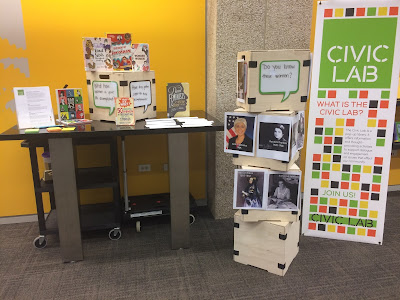 The team of folks here at my library who curate the Civic Lab were having a meeting a few weeks ago where we were discussing potential topics for future Civic Lab pop-ups. Sometimes we tie our pop-ups to formal programs on our calendar, sometimes to topics in the news, sometimes to installations in the library, and sometimes to specific days or months of import or conversation. We were brainstorming what topic to focus on for Women's History Month, and we had plenty to choose from--there's a lot going on right now affecting women, have you noticed? You might be surprised, then, to hear that the person who came up in conversation was Kanye.